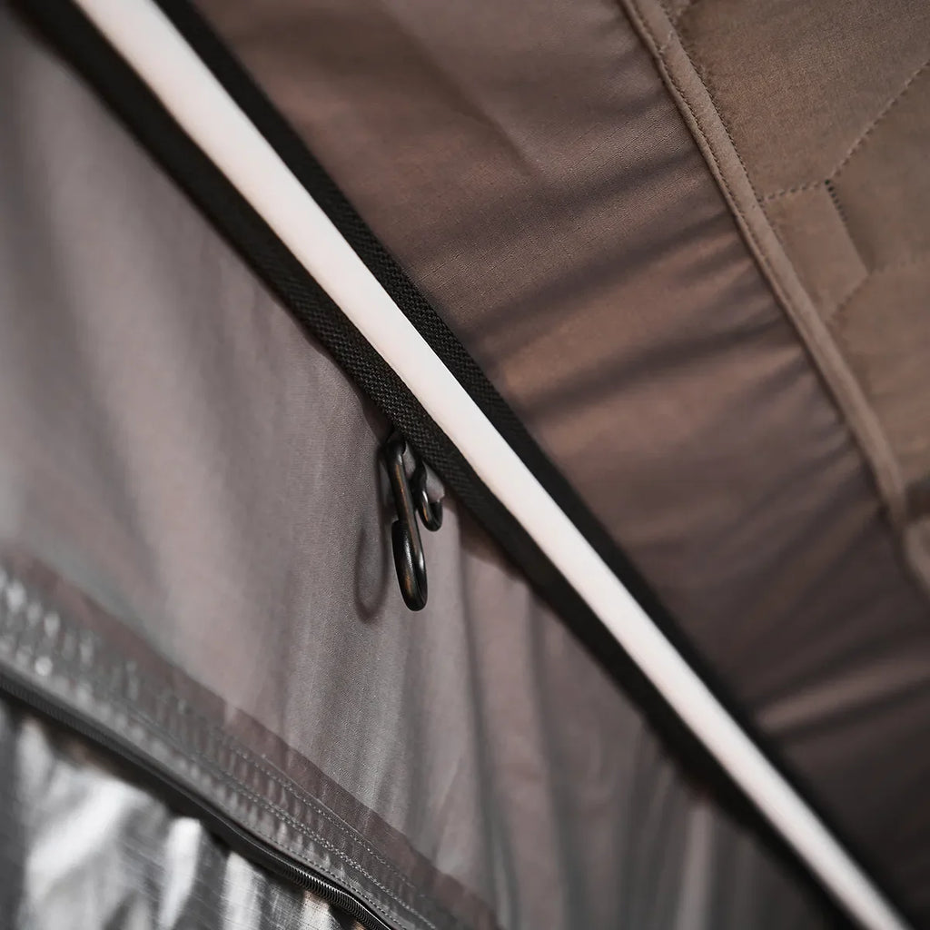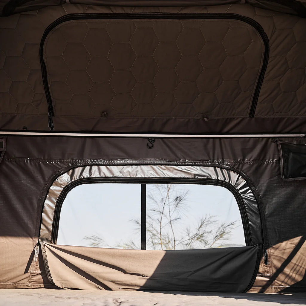 I Wild Land Taktelt Normandy Auto 140 finner man en komfortabel skummadrass på hele 9 cm, som gir en behagelig soveopplevelse. Dersom man ønsker ytterligere madrass, kan man tilføye oppblåsbare madrass eller liknende. Siden teltet ikke er hardtop, men benytter et kjøretrekk i PVC under transport, har du god plass til å la sengetøy, madrass, pute og andre ting ligge i teltet når du pakker det ned. Dette er en stor fordel, så man slipper og pakke alt inn i bilen når man pakker ned teltet. Du finner tre ventilasjonsluker med myggnett i Normandy Auto 140, noe som sikrer god lufting og begrenser kondens.