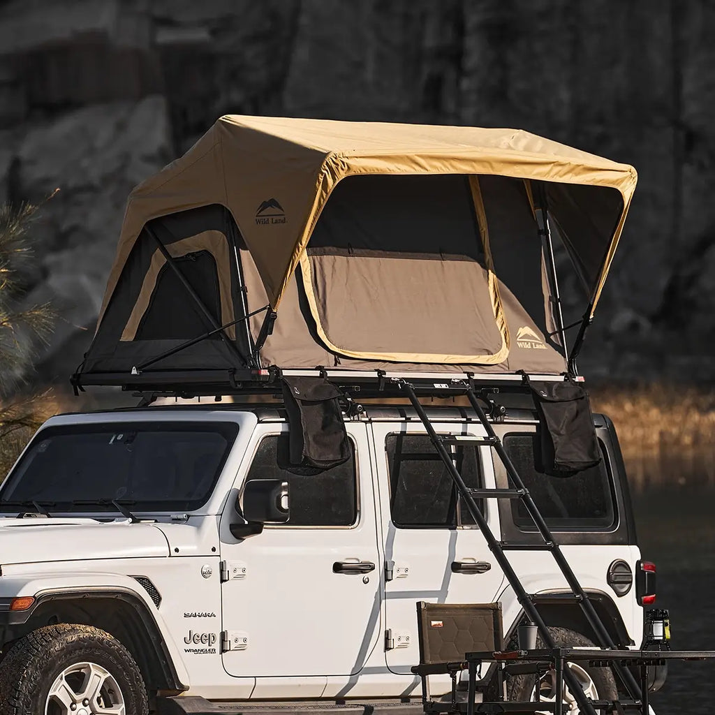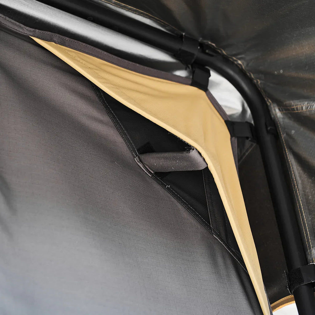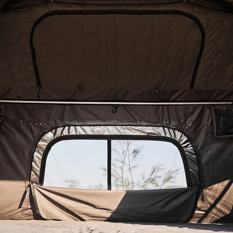 I Wild Land Taktelt Normandy Auto 120 finner man en komfortabel skummadrass på hele 9 cm, som gir en behagelig soveopplevelse. Dersom man ønsker ytterligere madrass, kan man tilføye oppblåsbare madrass eller liknende. Siden teltet ikke er hardtop, men benytter et kjøretrekk i PVC under transport, har du god plass til å la sengetøy, madrass, pute og andre ting ligge i teltet når du pakker det ned. Dette er en stor fordel, så man slipper og pakke alt inn i bilen når man pakker ned teltet. Du finner tre ventilasjonsluker med myggnett i Normandy Auto 120, noe som sikrer god lufting og begrenser kondens.